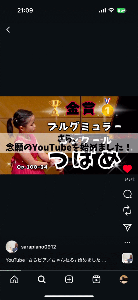 年長さんの頃からYouTubeにピアノ動画を載せる事を夢見ていた、さらです。